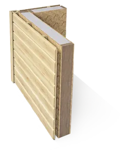 Сэндвич-панель ThermoHouse состоит из ОСП-плит и слоя пенополистирола. ОСП-плита, в свою очередь, на 90 % содержит древесную стружку, полученную при санитарной вырубке леса. Остальные 10 % составляют натуральные смолы, наполнители, отвердители и соль борной кислоты, которая усиливает защитные свойства ОСП. Из аналогичных плит изготавливается тара для фруктов, овощей и других продуктов питания.